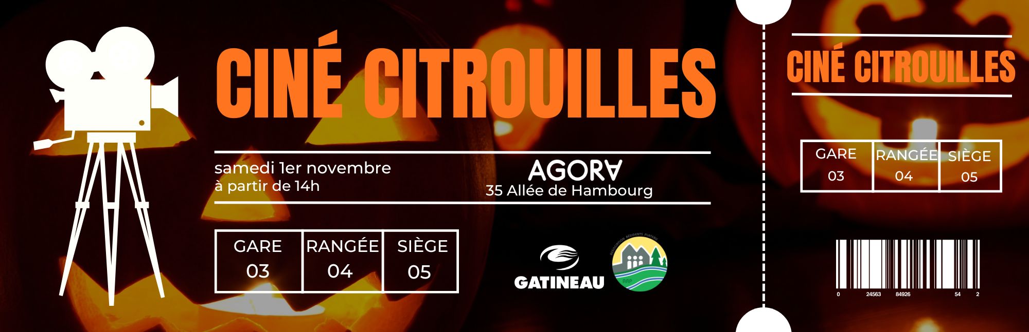 Prolongez l'esprit de l'Halloween avec la première édition de Ciné Citrouilles, une soirée festive pour toute la famille. Rendez-vous à l'Agora le samedi 1er novembre 2025 : apportez vos citrouilles décorées dès 14h pour qu'elles brillent lors de la soirée cinéma en plein air. À partir de 17h, vous pourrez souper sur place ou dans les restaurants environnants avant que le premier film, destiné aux jeunes familles, commence à 18h, suivi à 20h d'une projection pour les grands. La soirée se terminera vers 22h et, en cas de pluie, l'événement sera reporté au dimanche 2 novembre.