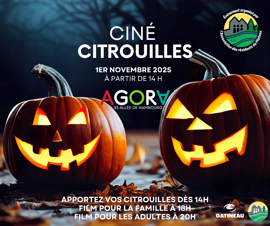 Prolongez l'esprit de l'Halloween avec la première édition de Ciné Citrouilles, une soirée festive pour toute la famille. Rendez-vous à l'Agora le samedi 1er novembre* 2025 : apportez vos citrouilles décorées dès 14h pour qu'elles brillent lors de la soirée cinéma en plein air. À partir de 17h, vous pourrez souper sur place ou dans les restaurants environnants avant que le premier film, destiné aux jeunes familles, commence à 18h, suivi à 20h d'une projection pour les grands.