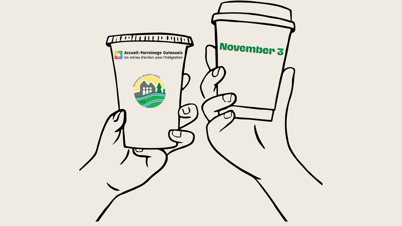 As part of Quebec Week of Intercultural Encounters, the Association of the residents of the Plateau and Accueil-Parrainage Outaouais invite you to a coffee gathering on Monday, November 3, from 6:00 to 7:30 p.m. at the Donalda-Charron Library.