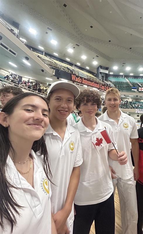 The renowned Wado-Kai International Cup 2025, a karate competition held every five years, was the main event of our trip. Our team of competitors--Dominic Julien, Tristan Hagman, Nicoleta Sobraneschi, Nicholas Brand Reyes--and our coach, Sensei Simon Raybould, represented Canada alongside teammates from Alberta and British Columbia, including Norma Foster, president of JKF Wado Kai Canada, who received an award of excellence for her contribution to the sport and its development. Not to mention Chloë Raybould, who won a bronze medal in her team kumite division alongside her teammates Danae Fell and Ethan Strohbach. Seeing our team and other competitors in our karate style unite at such a high level of competition was an incredible feeling that made us proud of the work we do at our dojo. It's fair to say that the experience gained during the competition was both valuable and enriching. In addition, we formed important connections with people from around the world, including England, Ireland, the United States, and our friends from Serbia, notably Tanja Petrovic, who visited our training camp in Niagara Falls in May.