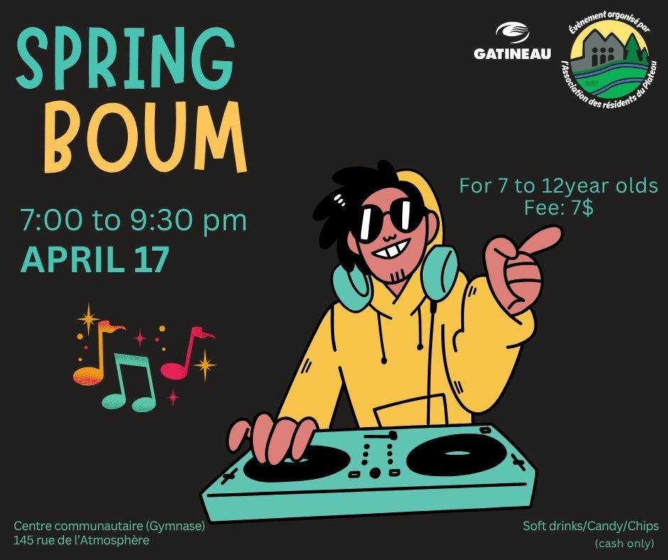 Come celebrate the arrival of spring with us on April 17 from 7:00 to 9:30 PM! This event is for 7-12 year olds and promises an electrifying atmosphere with a DJ who will get everyone dancing. Join us at the Centre communautaire du Plateau (145, rue de l'Atmosphère). Admission is $7*. Candy, chips, and soft […]