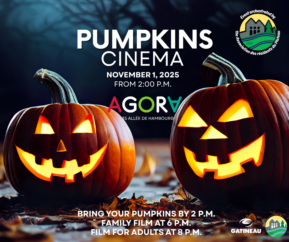 On Saturday, November 1st*, the Association des résidents du Plateau will transform the Agora plaza into a festival of carved pumpkins and autumn vibes. Bring your creations starting at 2 PM and watch the plaza come alive before the screenings.