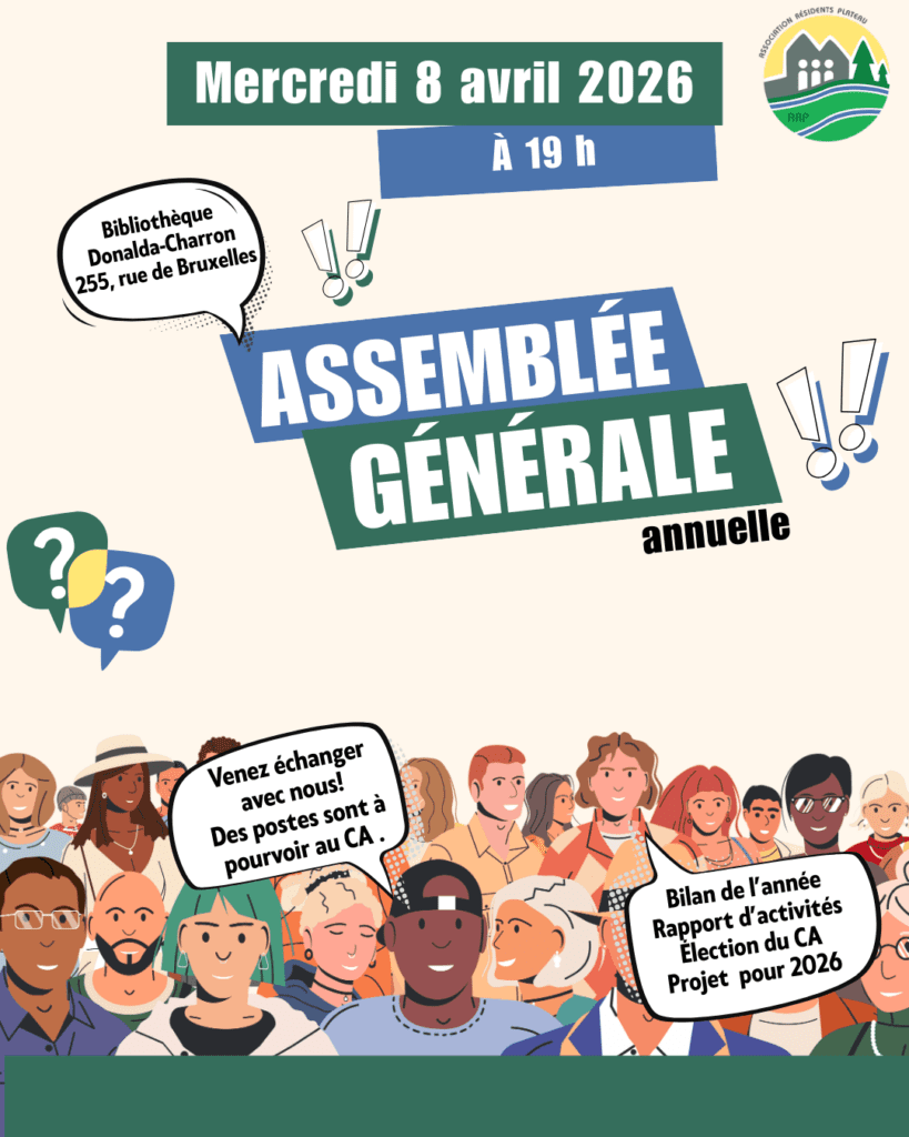 Nous vous invitons à ce moment important pour nous retrouver, faire le bilan de l'année écoulée, vous présenter nos projets et priorités pour le Plateau, et échanger sur les enjeux qui nous concernent tous. Nous aurons également la chance de rencontrer des élus et de leur poser nos questions.